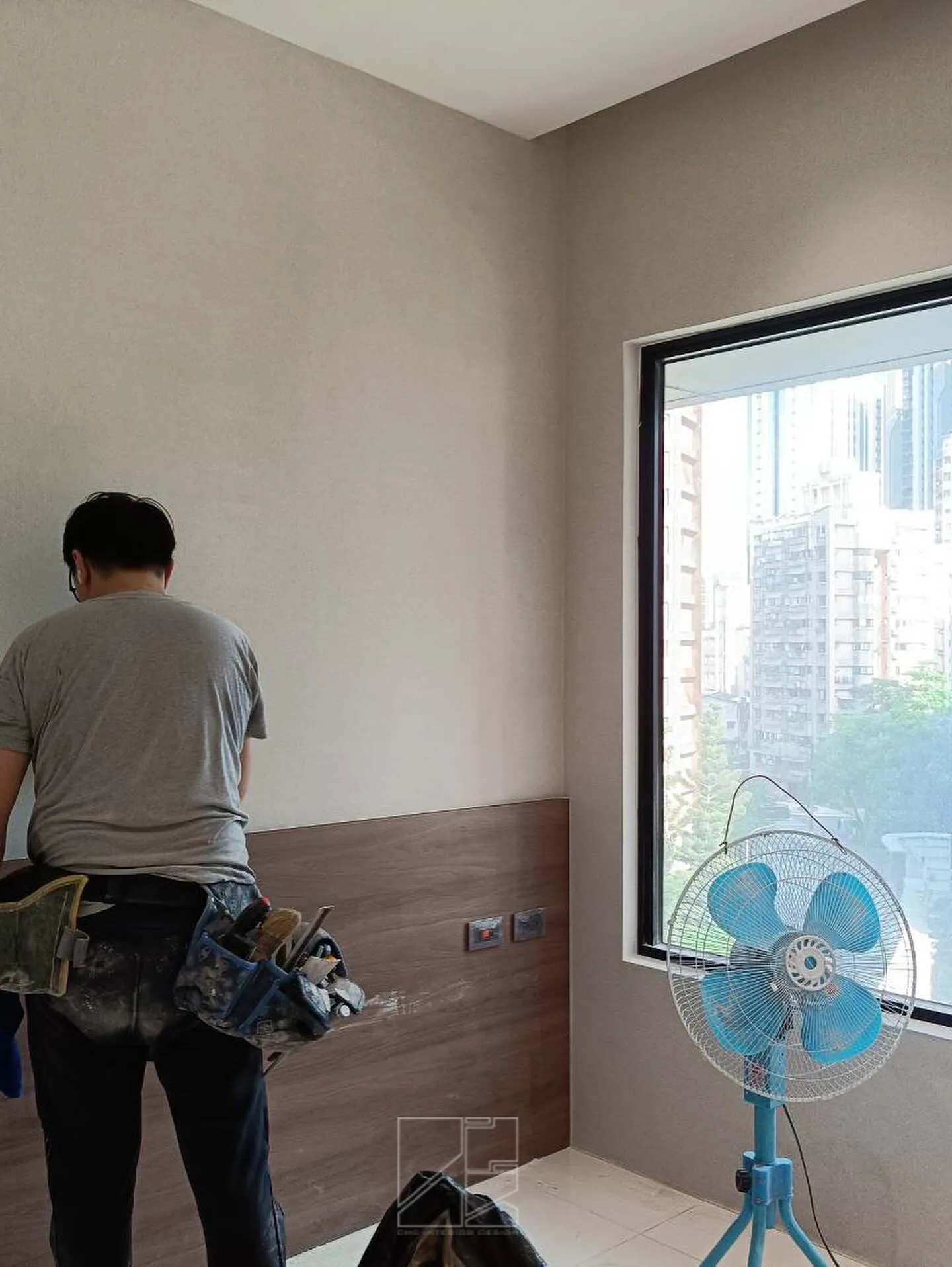 為了讓壁紙平整服貼、乾了也不會翹起來,師傅不開電風扇、還緊閉門窗,室內整個超~悶熱🥵